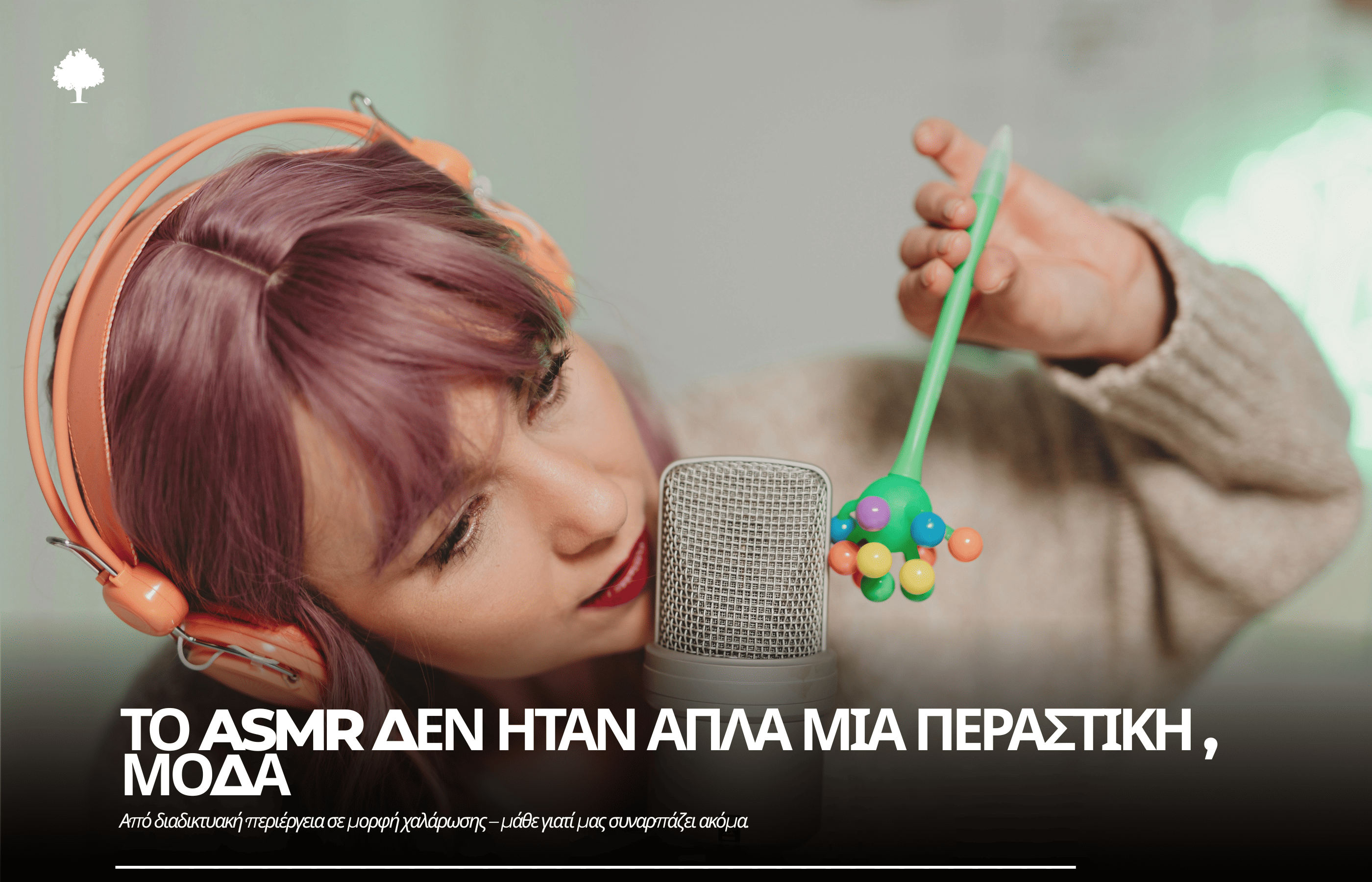 Η σύγχρονη ζωή κουράζει με τον ρυθμό, τις πληροφορίες και τη συνεχή βιασύνη. Το ASMR έχει γίνει ένα είδος αντίδοτου – ένας απλός, προσιτός και αποτελεσματικός τρόπος χαλάρωσης. Δεν απαιτεί ειδικές δεξιότητες ή εξοπλισμό: αρκούν ένα ζευγάρι ακουστικά και λίγος χρόνος ησυχίας. Είναι ένα τελετουργικό που μας βοηθά να επιστρέψουμε στο «εδώ και τώρα», να αποσυνδεθούμε από τις οθόνες και τον εξωτερικό θόρυβο. Το ASMR ηρεμεί, βοηθά να συγκεντρωθούμε και να επικεντρωθούμε σε αυτό που πραγματικά έχει σημασία – στη στιγμή.