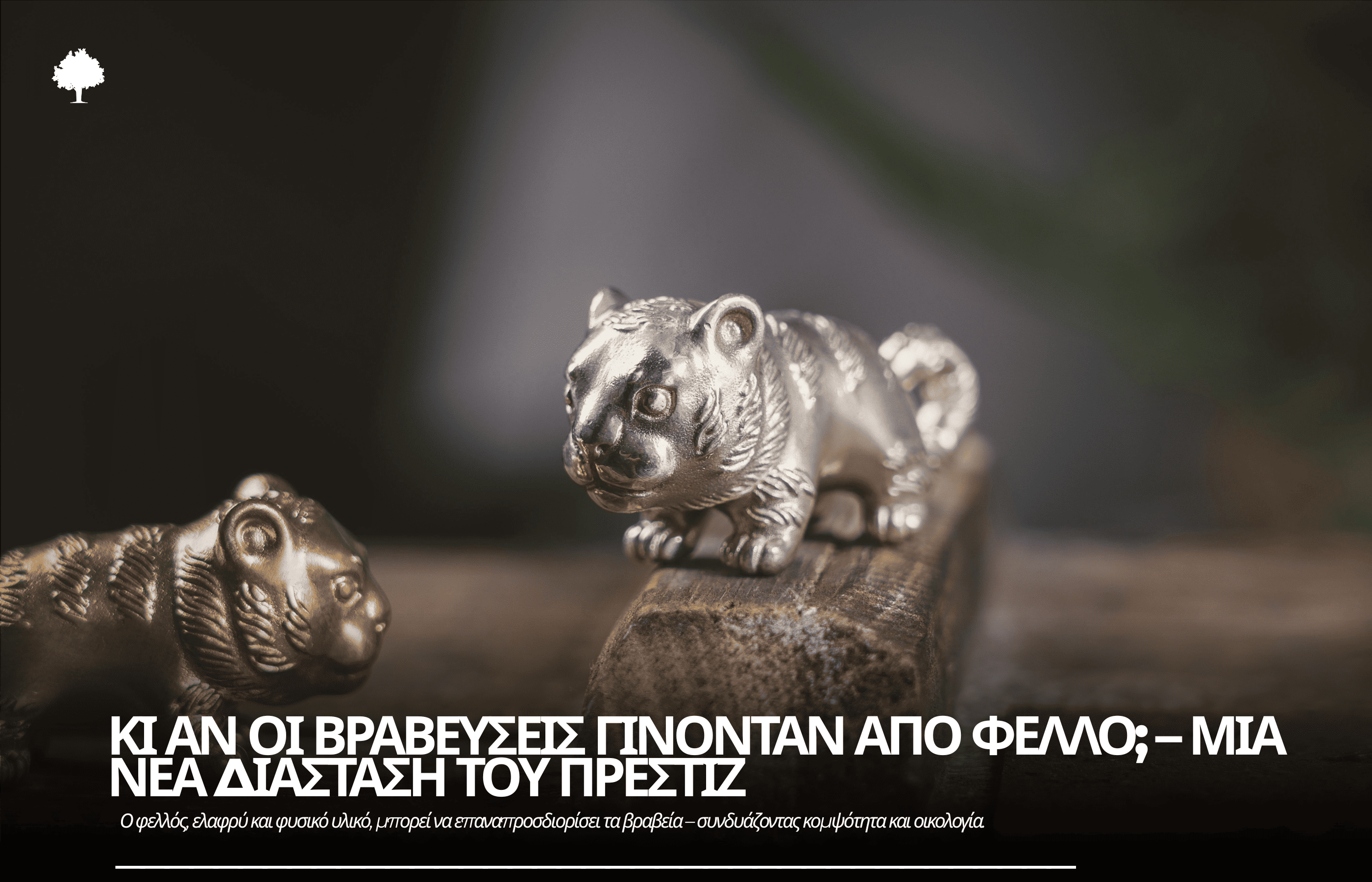 Σε αυτό το νέο πλαίσιο γεννάται το ερώτημα: μήπως το σύμβολο της επιτυχίας πρέπει να εξελιχθεί μαζί μας; Ίσως ήρθε η στιγμή το βραβείο που προσφέρουμε να εκφράζει όχι μόνο αναγνώριση, αλλά και να αντικατοπτρίζει τη σύγχρονη προσέγγισή μας στον κόσμο – την ευαισθησία προς τη φύση, τη βιωσιμότητα και την αυθεντικότητα.