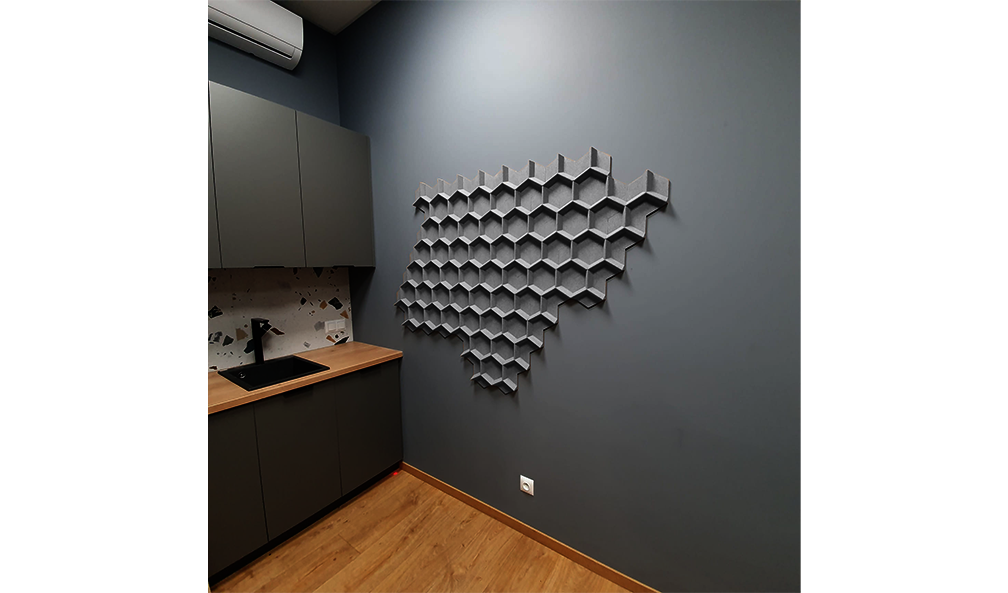 Η σχεδίαση Honeycomb μοιάζει με κυψέλη — έχει καθαρό, γεωμετρικό, τρισδιάστατο στυλ. Όταν οι πίνακες τοποθετηθούν μαζί, ο τοίχος μετατρέπεται σε εντυπωσιακή, μοντέρνα σύνθεση. Το φως και οι σκιές που αλλάζουν του δίνουν ζωή και κίνηση καθώς κινείστε ή αλλάζει ο φωτισμός.